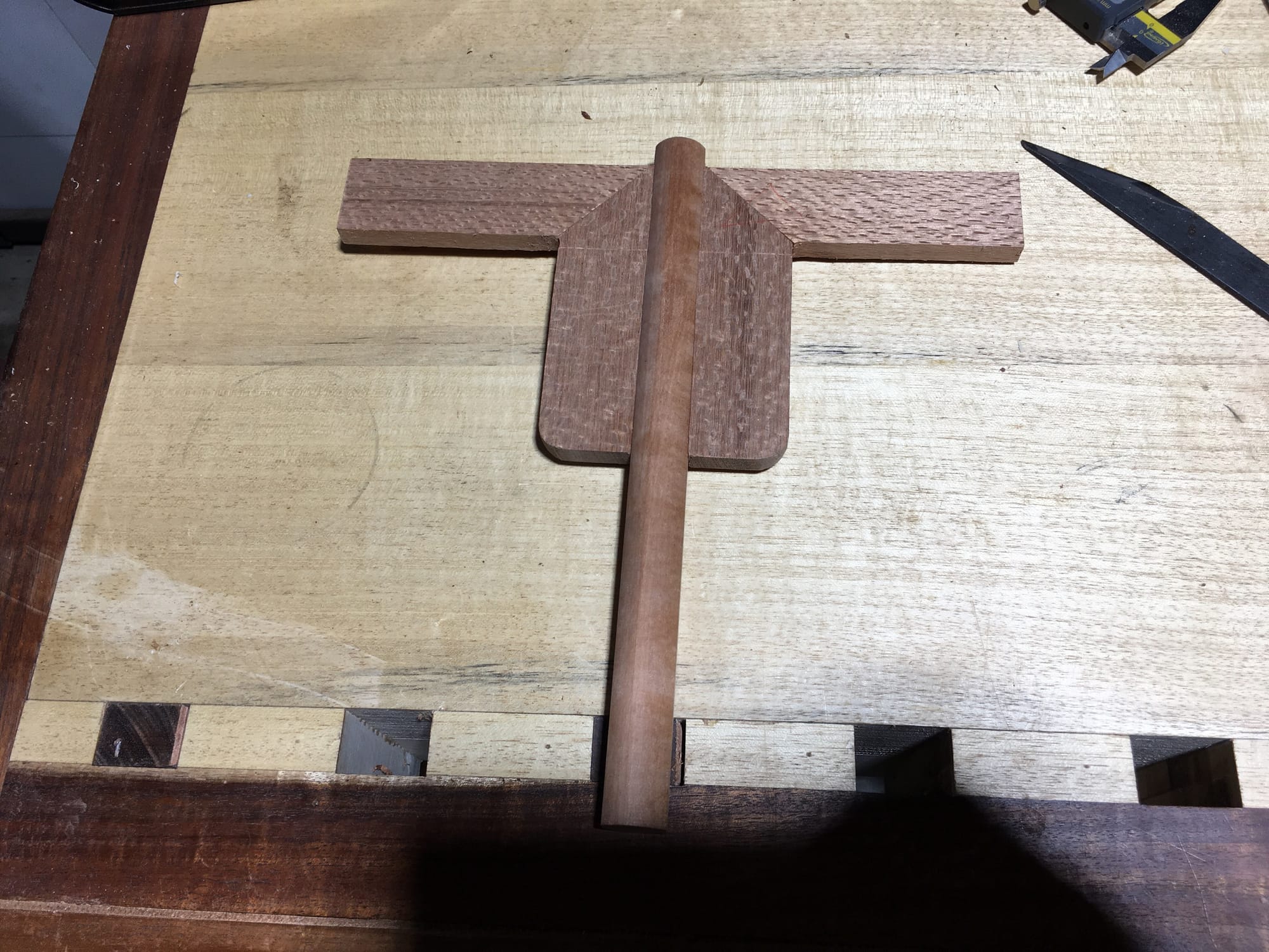 Three pieces of silky oak and myrtle are sitting on my bench. Offcuts from the scrap pile, nothing precious. I'm making joinery samples for an exhibition in a few weeks. Something people can touch, pull apart and see the work that goes into the tables in front of them.