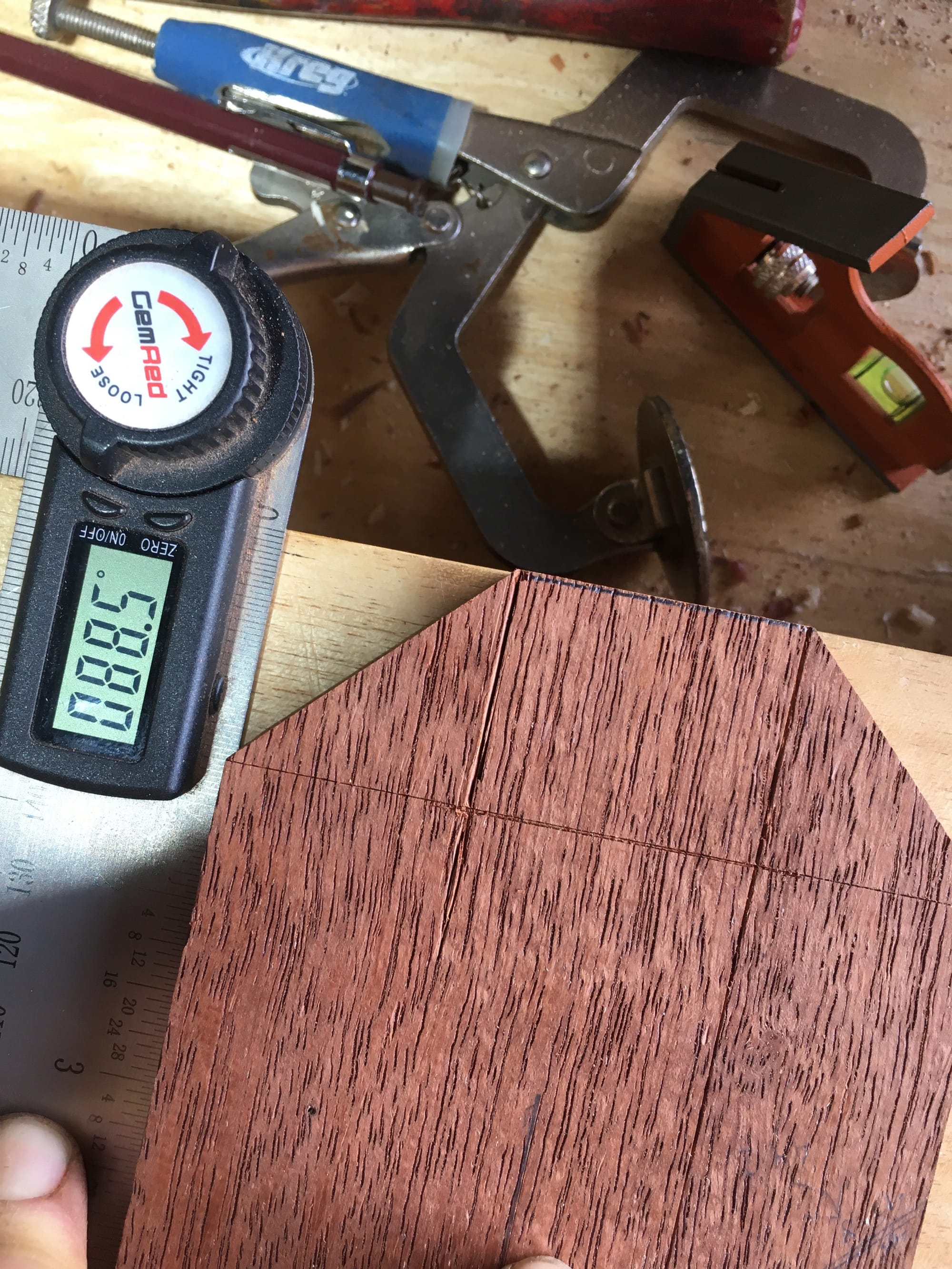 The 1.5 angle off the top is exactly 1.5, and the two ends of the mitres line up to within 0.25mm (that I can measure). Good grief.